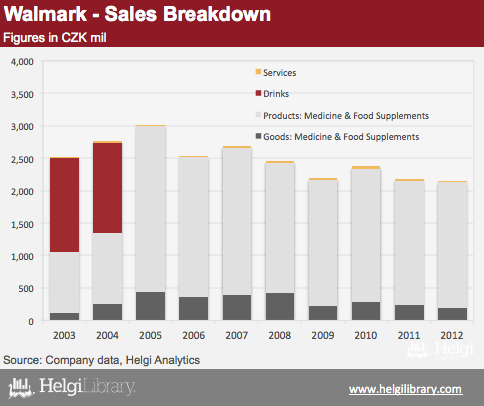 Walmark's sales have been practically falling since 2005. In 2012, Company's sales reached CZK 2,144 mil in 2012, down 28% when compared to the record year 2005.
