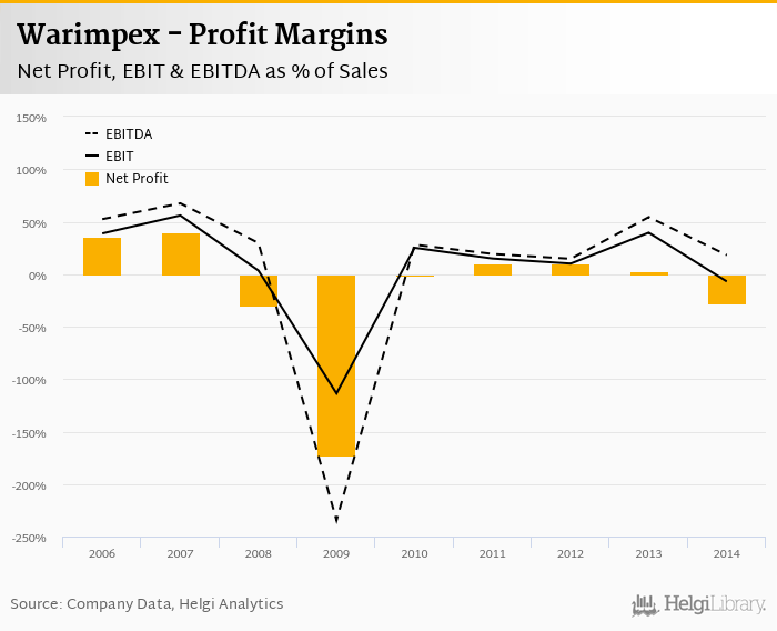 Warimpex made a net profit of EUR -20.7 mil with revenues of EUR 73.8 mil in 2014, down by 790% and down by 18.1%, respectively, compared to the previous year.