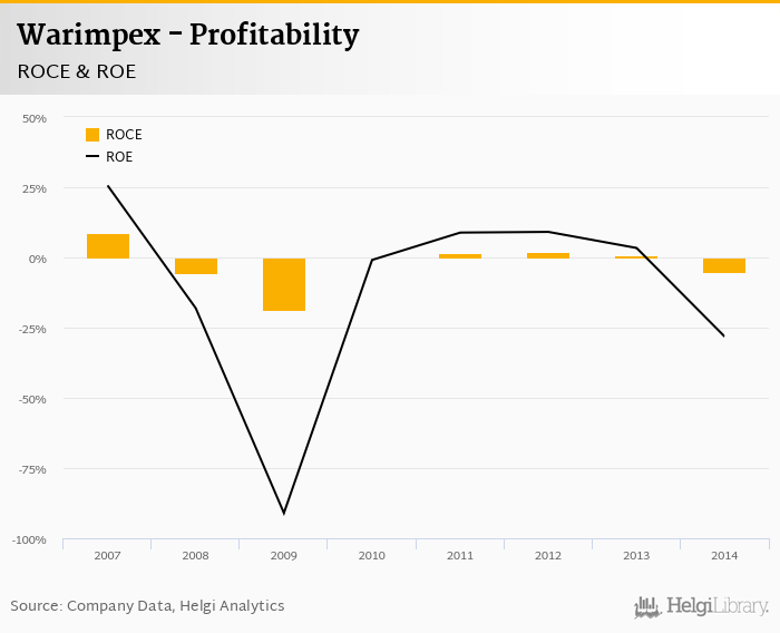 As far as Warimpex's peers are concerned, Danubius Hotel and Spa generated ROE of 2.95% and ROCE of 1.95% in 2014.