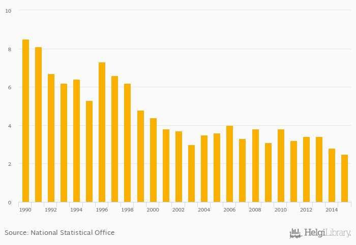 Historically, waterways transport in tonne-km as a share of total inland freight transport in Luxembourg reached an all time high of 8.50% in 1990 and an all time low of 2.50% in 2015. When compared to Luxembourg's main peers, waterways transport in tonne-km as a share of total inland freight transport in Belgium amounted to 21.1%, 4.30% in France, 11.4% in Germany and 39.1% in Netherlands in 2015.