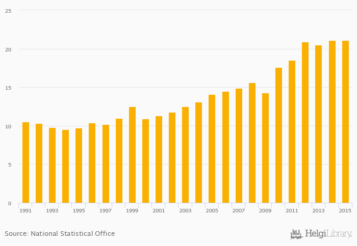 | Belgium | % | 14.3% | 17.6% | 18.5% | 20.9% | 20.5% | ||||||||||||||||