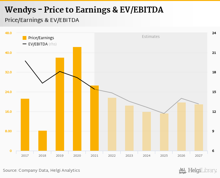 Wendys stock traded at USD 23.9 per share at the end 2021 translating into a market capitalization of USD 5,352 mil.