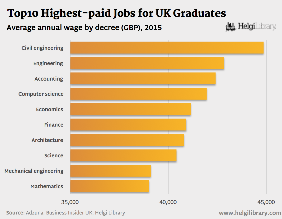 Most people like to choose the degree they study at university based on a love of the subject, but if you're torn between a few courses it can be good to know what the career prospects are like, Business Insider writes.