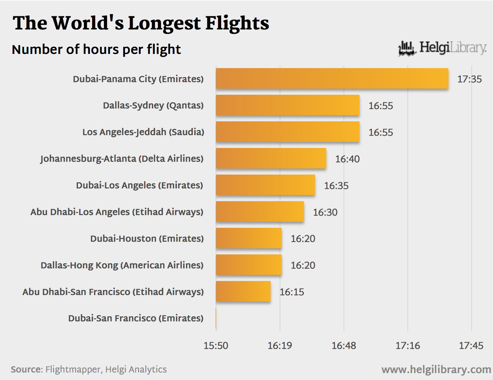 Today, the longest flight in the world – between Dubai and Panama City – will take you about 17 hours and 35 minutes. That might seem like a long time to be stuck in your seat, but consider the on-demand movies, climate control and complimentary drinks. Compared with 1914, perhaps things don’t look so bad, do they?