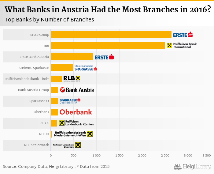 Comparing Erste Group Bank with its closest peers, Raiffeisen Bank Int. operated a network of 2,506 branches in 2016, Erste Bank Austria had 926 branches and Steiermarkische Sparkasse had a network of 490 branches in 2016.