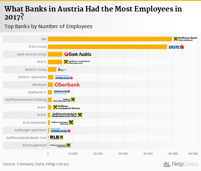 Based on a comparison of 15 banks in Austria in 2017, Raiffeisen Bank Int. had the most employees, followed by Erste Group Bank and Bank Austria Group.