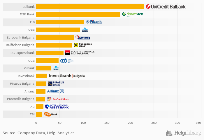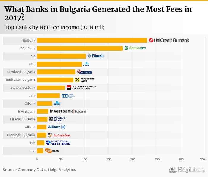 Based on a comparison of 28 banks in Bulgaria in 2017, UniCredit Bulbank generated the largest fee income, followed by DSK Bank and First Investment Bank.