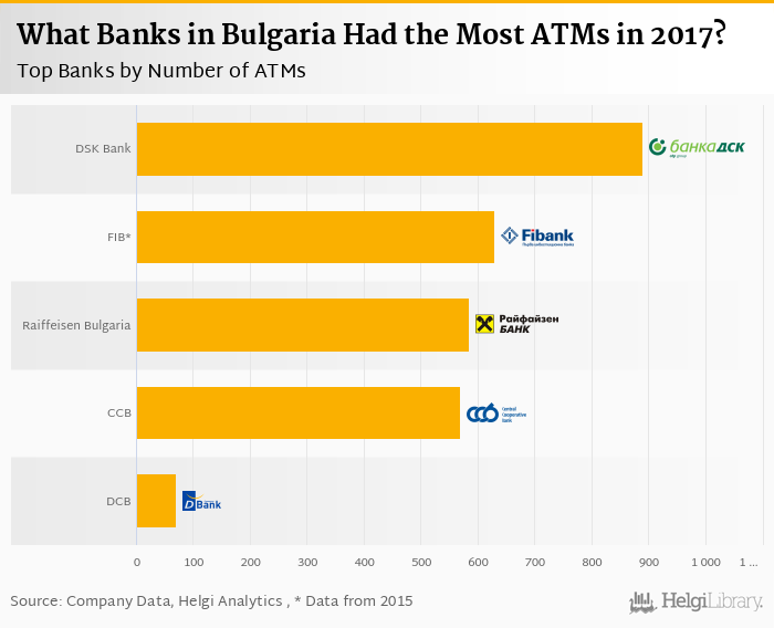 Comparing DSK Bank with its closest peers, Raiffeisenbank Bulgaria operated a network of 585 ATMs in 2017, Central Cooperative Bank had 569 ATMs and D Commerce Bank had a network of 70.0 ATMs in 2017.