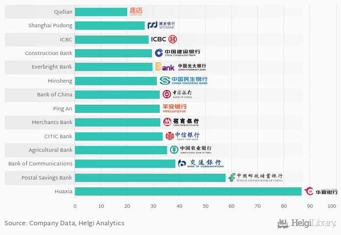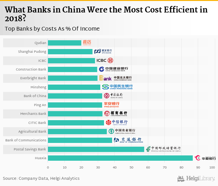 Based on a comparison of 14 banks in China in 2018, Qudian was the most cost efficient bank, followed by Shanghai Pudong Development Bank and Industrial & Commercial Bank of China.