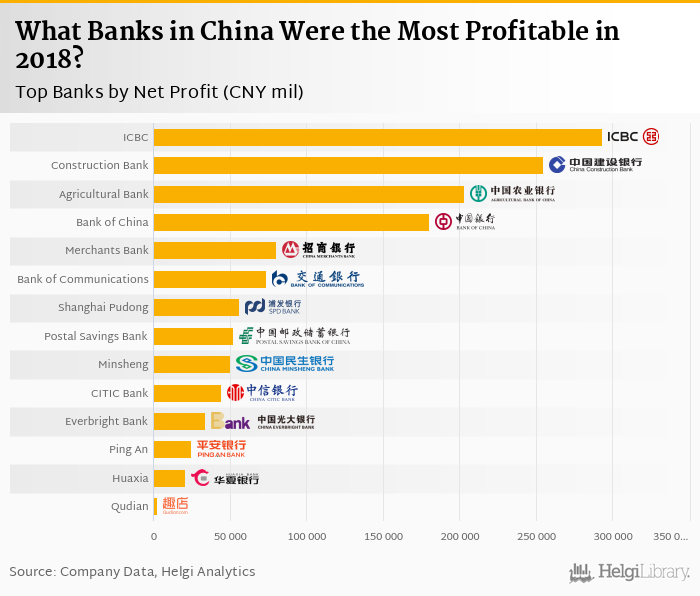 Based on a comparison of 14 banks in China, Industrial & Commercial Bank of China produced the highest net profit in 2018, followed by China Construction Bank and Agricultural Bank of China.