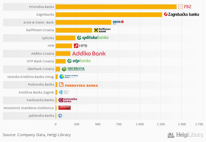 Comparing Privredna Banka Zagreb with its closest peers, Zagrebacka Banka generated total fee income of HRK 1,269 mil, Erste & Steiermarkische Bank operated with HRK 663 mil fee income and Raiffeisenbank Croatia produced total fees worth HRK 437 mil.