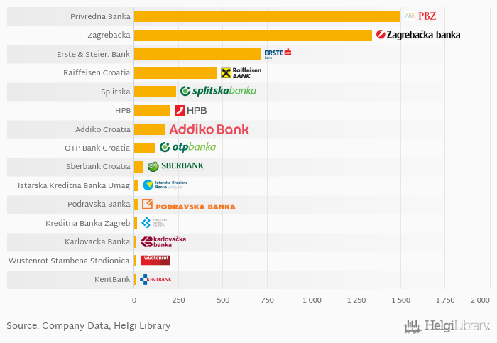 Comparing Privredna Banka Zagreb with its closest peers, Zagrebacka Banka generated total fee income of HRK 1,341 mil, Erste & Steiermarkische Bank operated with HRK 715 mil fee income and Raiffeisenbank Croatia produced total fees worth HRK 469 mil.