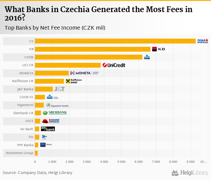 Based on a comparison of 26 banks in Czechia in 2016, Ceska Sporitelna generated the largest fee income, followed by Komercni Banka and CSOB.