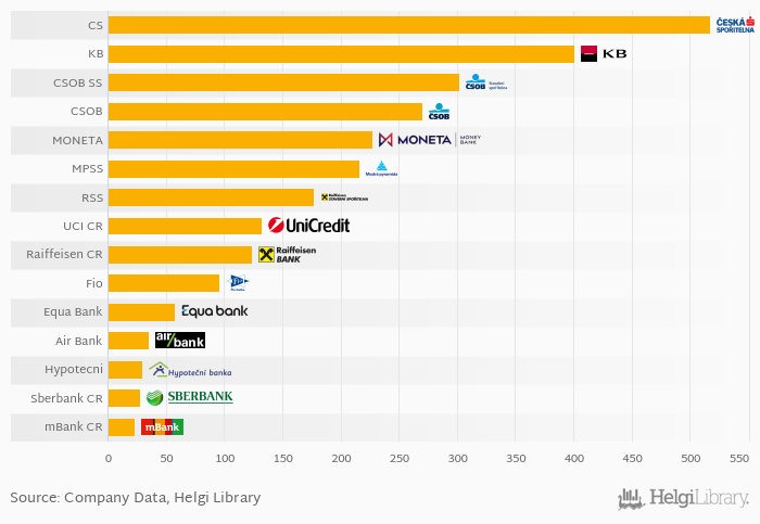 You can see all the banks branches data on the Branches indicator page or you can download a report on the Czech banks in the report section.