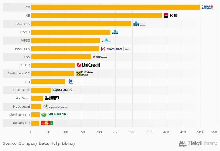 You can see all the banks branches data on the Branches indicator page or you can download a report on the Czech banks in the report section.