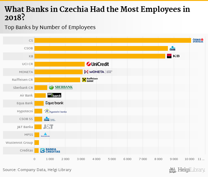 Based on a comparison of 26 banks in Czechia in 2018, Ceska Sporitelna had the most employees, followed by CSOB and Komercni Banka.