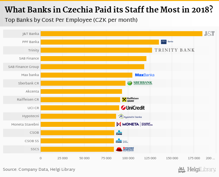 Based on a comparison of 26 banks in Czechia in 2018, J&T Banka was paying its employees the best, followed by PPF Banka and Trinity Bank.