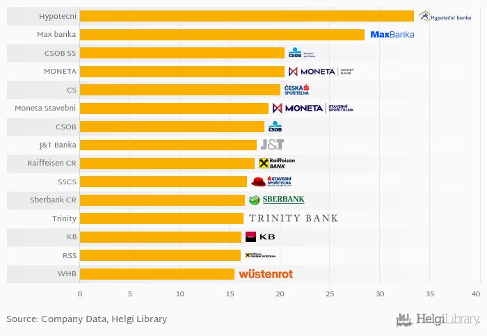 Comparing Hypotecni Banka with its closest peers, Max banka ended the year 2016 with a capital adequacy ratio at 28.5%, CSOB Stavebni Sporitelna with 20.5% and MONETA Money Bank some 20.5% at the end of 2016.