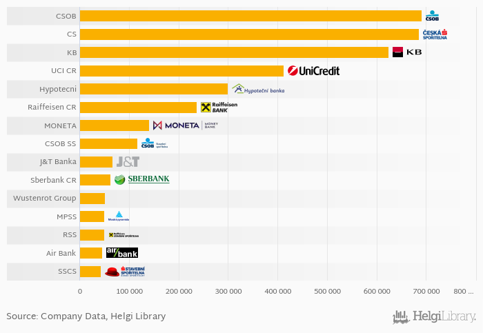 Comparing CSOB with its closest peers, Ceska Sporitelna customer loans amounted to CZK 685,639 mil, Komercni Banka operated with CZK 624,954 mil loans and UniCredit Bank Czecho-Slovakia had a loan portfolio of CZK 412,036 mil.