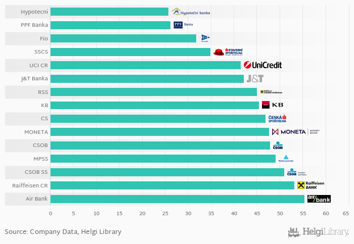 You can see all the banks cost efficiency data on the Costs (As % Of Income) indicator page or you can download a report on the Czech banks in the report section.