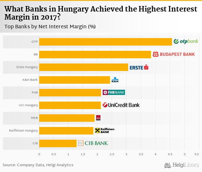 Based on a comparison of 9 banks in Hungary in 2017, OTP Group operated with the highest net interest margin, followed by Budapest Bank and Erste Bank Hungary.