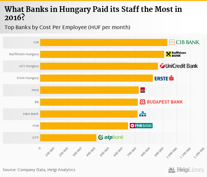 Based on a comparison of 9 banks in Hungary in 2016, CIB Bank was paying its employees the best, followed by Raiffeisen Bank Hungary and UniCredit Bank Hungary.