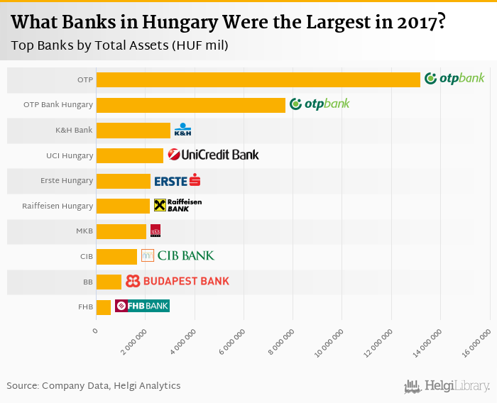 Based on a comparison of 10 banks in Hungary in 2017, OTP Group was the largest bank by assets, followed by OTP Bank Hungary and K&H Bank.