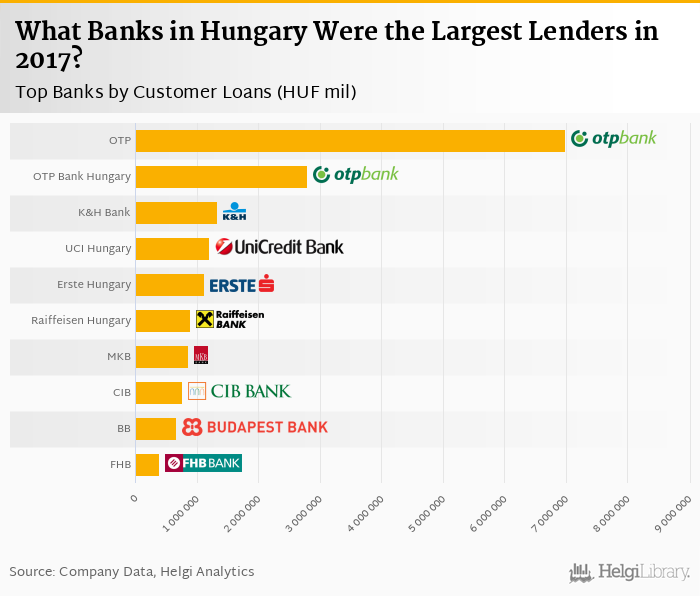 Based on a comparison of 10 banks in Hungary in 2017, OTP Group was the largest lender, followed by OTP Bank Hungary and K&H Bank.