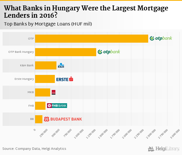 Based on a comparison of 7 banks in Hungary in 2016, OTP Group was the largest mortgage lender, followed by OTP Bank Hungary and K&H Bank.