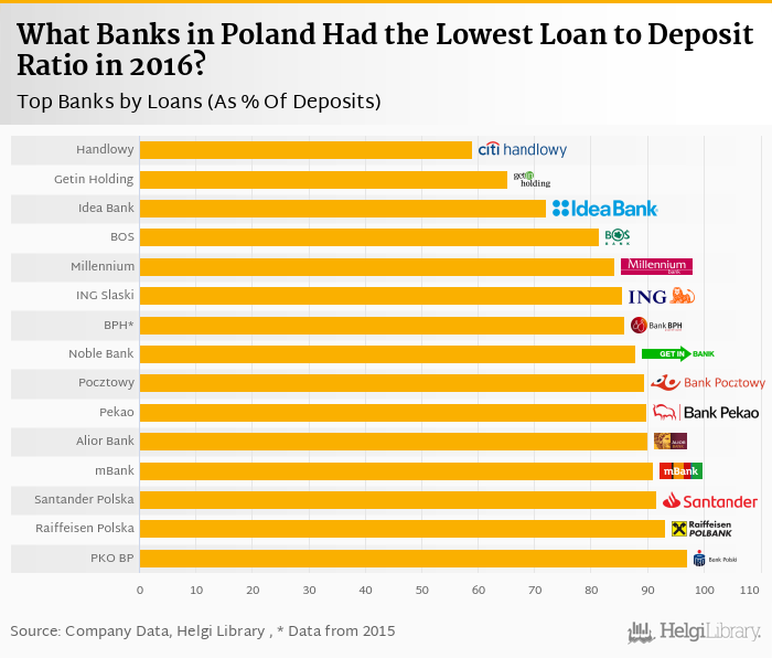 You can see all the banks loan to deposit ratio on the Loans (As % Of Deposits) indicator page or you can download a report on the Polish banks in the report section.