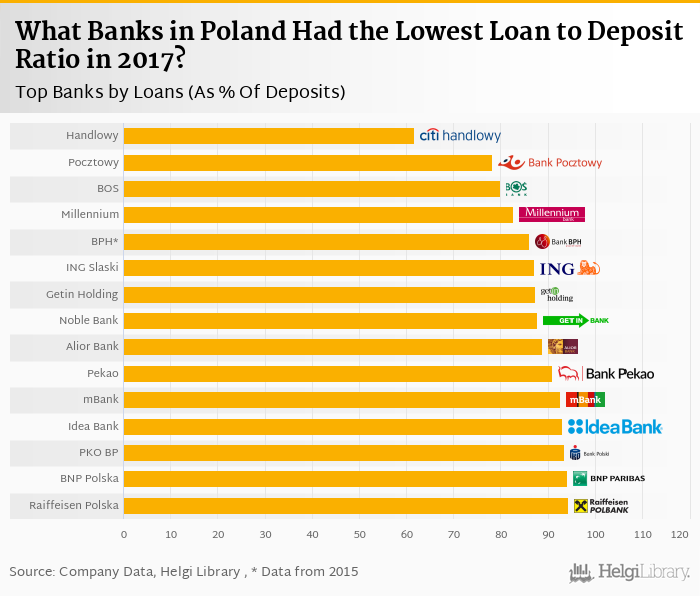 You can see all the banks loan to deposit ratio on the Loans (As % Of Deposits) indicator page or you can download a report on the Polish banks in the report section.