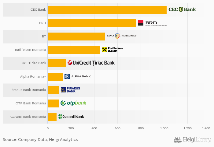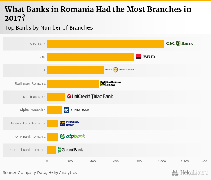 Comparing CEC Bank with its closest peers, BRD Groupe Societe Generale operated a network of 760 branches in 2017, Banca Transilvania had 496 branches and Raiffeisen Bank Romania had a network of 451 branches in 2017.