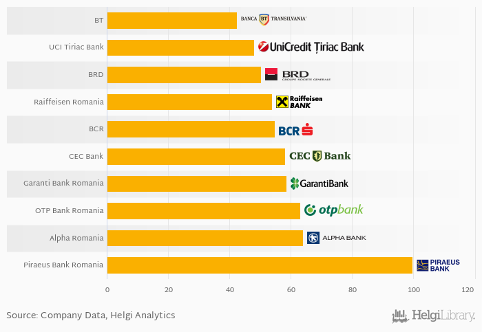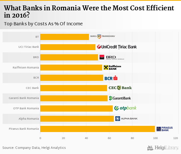 Based on a comparison of 10 banks in Romania in 2016, Banca Transilvania was the most cost efficient bank, followed by UniCredit Tiriac Bank and BRD Groupe Societe Generale.