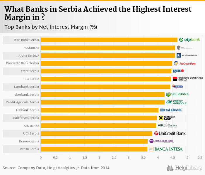 Based on a comparison of 17 banks in Serbia in 2016, OTP Bank Serbia operated with the highest net interest margin, followed by Banka Postanska Stedionica and Procredit Bank Serbia.