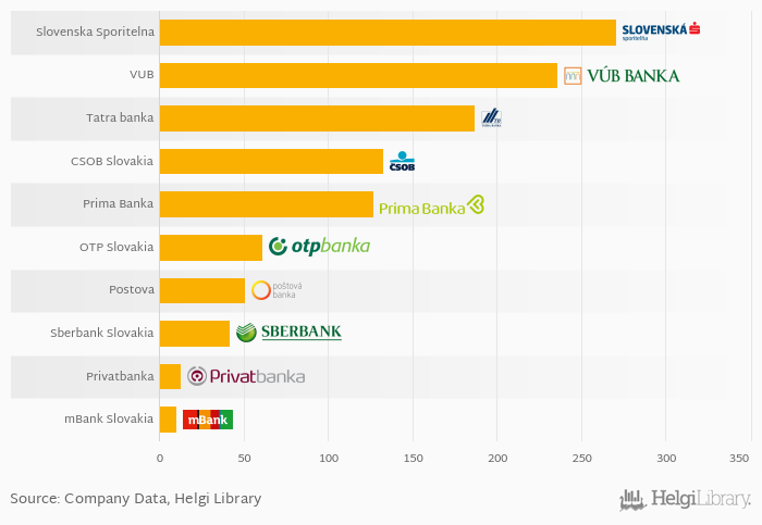 Comparing Slovenska Sporitelna with its closest peers, VUB Banka operated a network of 236 branches in 2017, Tatra banka had 187 branches and CSOB Slovakia had a network of 133 branches in 2017.