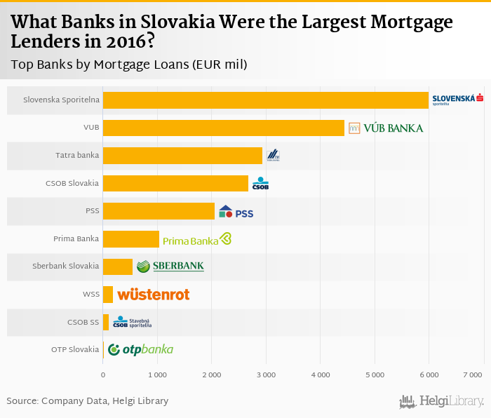 Based on a comparison of 10 banks in Slovakia in 2016, Slovenska Sporitelna was the largest mortgage lender, followed by VUB Banka and Tatra banka.