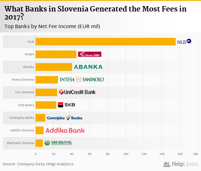 Based on a comparison of 10 banks in Slovenia in 2017, Nova Ljubljanska banka generated the largest fee income, followed by NKBM Group and Abanka Group.