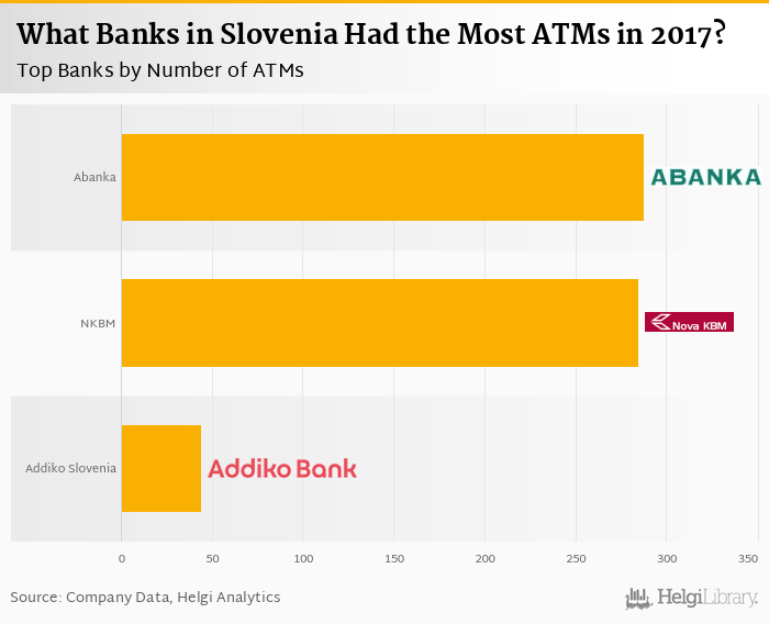 Based on a comparison of 6 banks in Slovenia in 2017, Abanka Group operated the largest ATM network, followed by NKBM Group and Addiko Bank Slovenia.