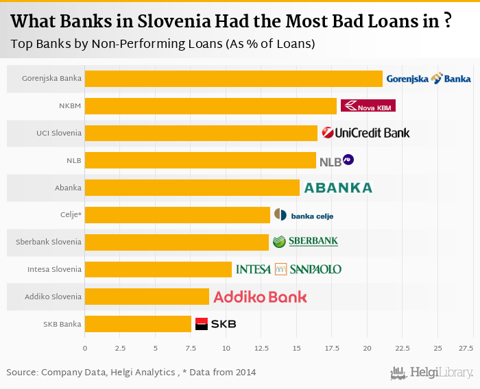 You can see all the banks non-performing loans data on the NPLs (As % Of Loans) indicator page or you can download a report on the Slovenian banks in the report section.