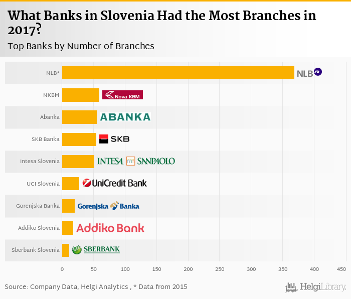 Based on a comparison of 10 banks in Slovenia in 2017, NKBM Group had the most branches, followed by Abanka Group and SKB Banka.