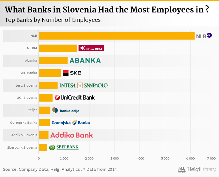 Based on a comparison of 10 banks in Slovenia in 2016, Nova Ljubljanska banka had the most employees, followed by NKBM Group and Abanka Group.