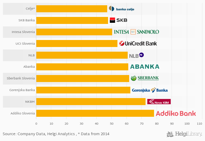 You can see all the banks cost efficiency data on the Costs (As % Of Income) indicator page or you can download a report on the Slovenian banks in the report section.