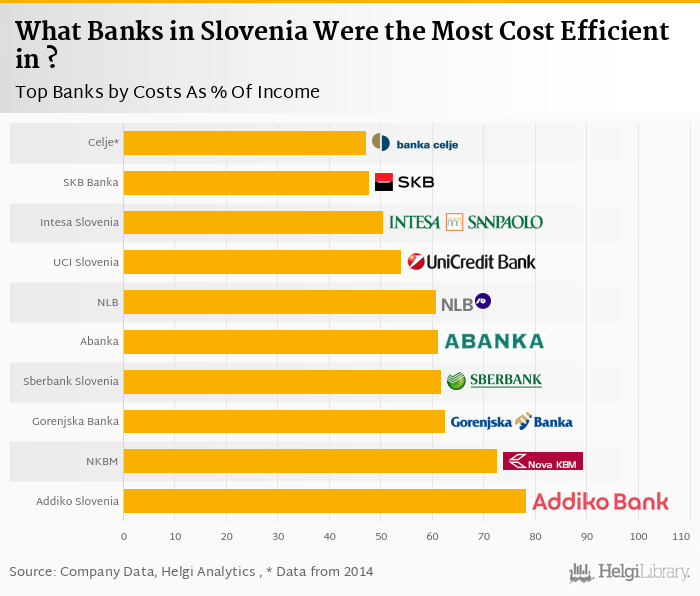 Based on a comparison of 10 banks in Slovenia in 2016, SKB Banka was the most cost efficient bank, followed by Intesa Sanpaolo Bank Slovenia and UniCredit Bank Slovenia.