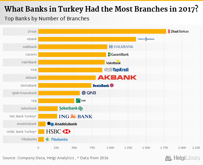 Ziraat Bank operated a network of 1,781 branches at the end of 2017. That's compared to 1,251 branches some 10 years ago.