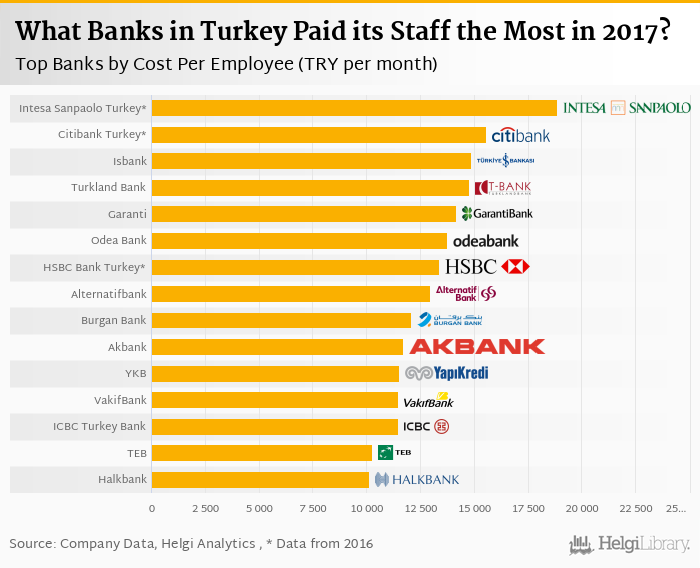 Based on a comparison of 22 banks in Turkey in 2017, Isbank was paying its employees the best, followed by Turkland Bank and Garanti Bank.