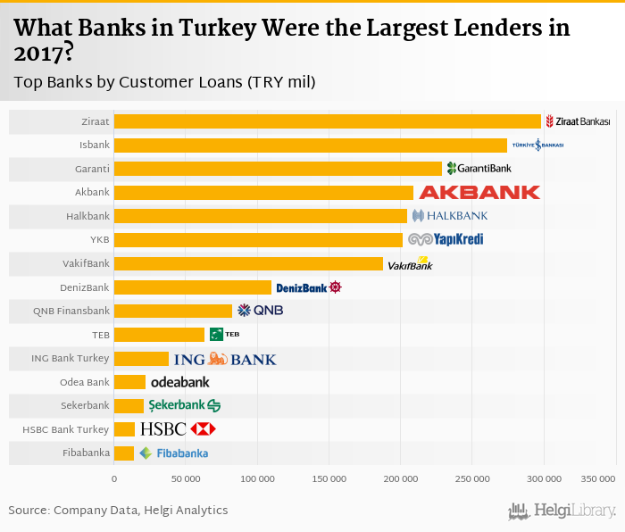 Based on a comparison of 22 banks in Turkey in 2017, Ziraat Bank was the largest lender, followed by Isbank and Garanti Bank.