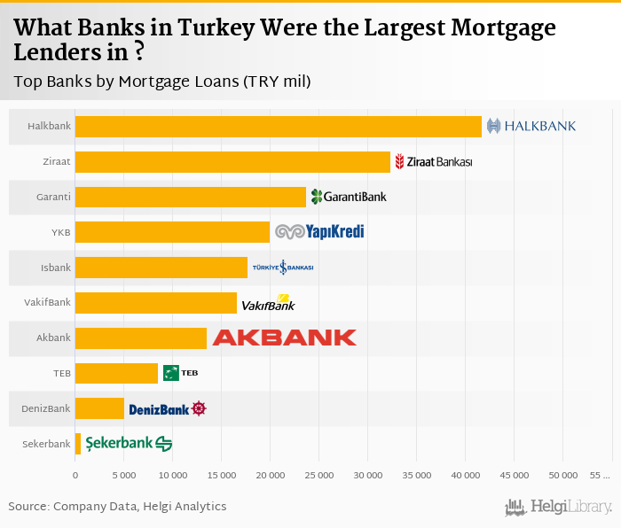 Based on a comparison of 10 banks in Turkey in 2016, Halkbank was the largest mortgage lender, followed by Ziraat Bank and Garanti Bank.