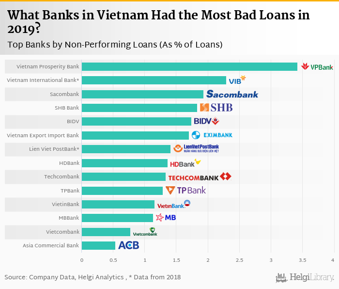 You can see all the banks non-performing loans data on the NPLs (As % Of Loans) indicator page or you can download a report on the Vietnamese banks in the report section.
