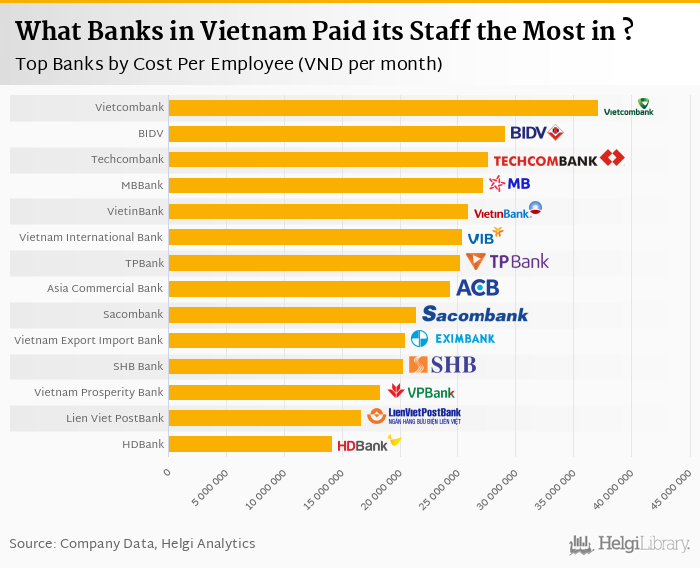 Based on a comparison of 14 banks in Vietnam in 2018, Vietcombank was paying its employees the best, followed by BIDV and Techcombank.