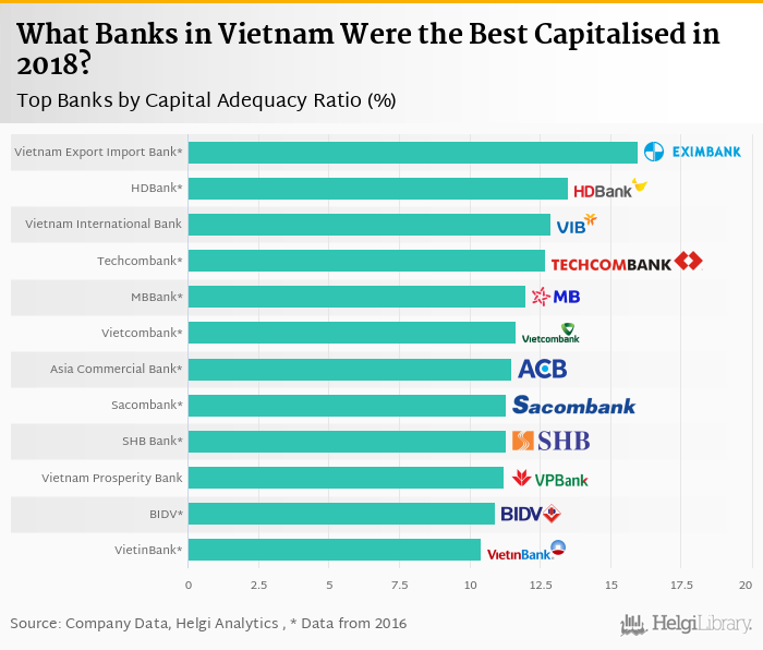 Based on a comparison of 12 banks in Vietnam in 2018, Vietnam International Bank was the best capitalised bank, followed by Vietnam Prosperity Bank and.